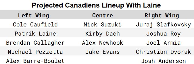Canadiens Depth Chart: Line Options Following Patrik Laine Trade