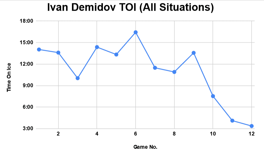 The last time we checked-in on Demidov, he was enjoying a strong start to his professional career despite being given very little ice time. As a rookie, it’s understandable he has to work for his ice time. As Rob Ramage mentioned in a recent media availability, in that situation you need to get better, not bitter.