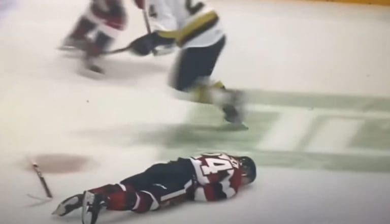 It wasn’t the hit that did the damage, but the awkward fall to the ice, which left the youngster motionless on the ice for several moments, requiring a stretcher to take him off the ice for further medical evaluation.
